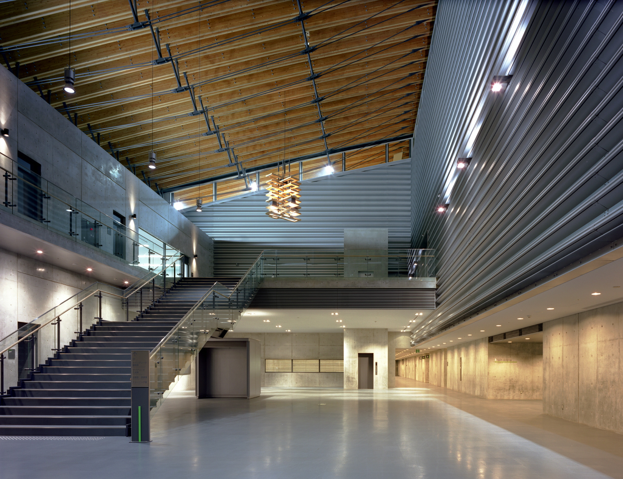 AIカメラが導入されており、撮影した映像をもとに技術分析をしたり、日本全国からリアルタイムに観戦・応援したりできます。施設は、1階がメインアリーナ、サブアリーナを中心として、大規模な大会の開催にも対応できるように放送室や可動式観客席(500席)を備えています。また2階には固定観客席1,600席、会議室・研修室、1周約240mのジョギングコースを設けています。